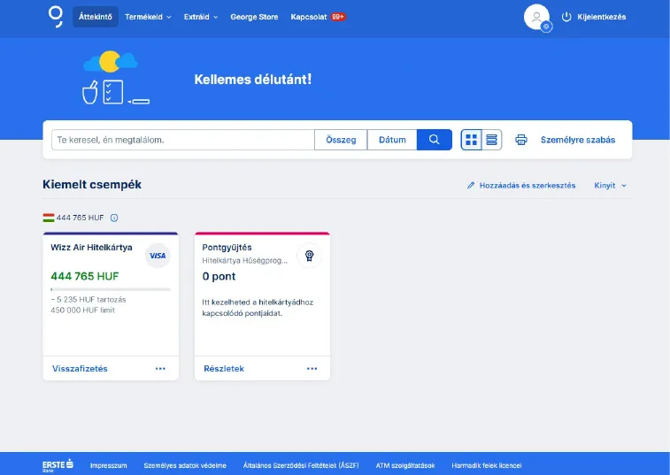 - A szolgáltatás aktiválása az internetbanki és mobilalkalmazási szolgáltatásunkon (George Web, George App). Ennek hiányában pontjaid nem tudjuk átadni a Wizz Airnek (lásd 1. lépés).