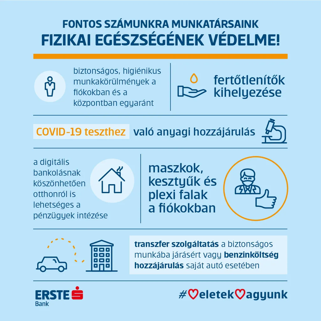 Bankunk egyik legfontosabb alapelve, hogy törődünk egymással és másokkal is, ezért nem is volt kérdés, hogy a járványügyi helyzet kapcsán az összes olyan lépést azonnal meg kell hozni, mely biztosítja munkatársaink, ügyfeleink fizikai és mentális jólétét.