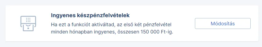 Itt az "Ingyenes készpénzfelvétel" pontra koppintva tudod beállítani az ingyenes készpénzfelvételt, illetve készpénzátvételt.