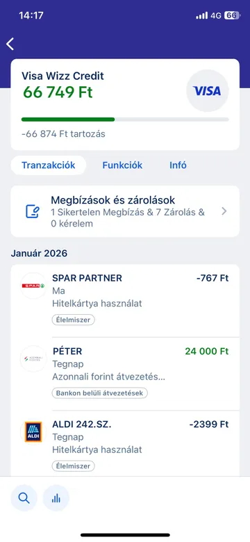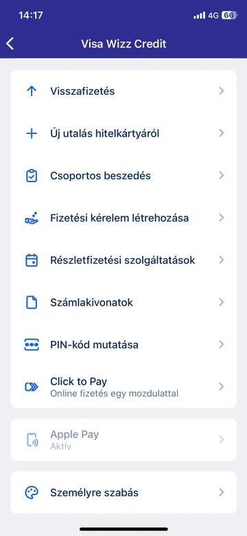 Miután bejelentkeztél a George Appba, koppints a hitelkártya számládra azon belül a funkciók menüpontra. Itt fogod találni a "Részletfizetési szolgáltatások" lehetőséget.