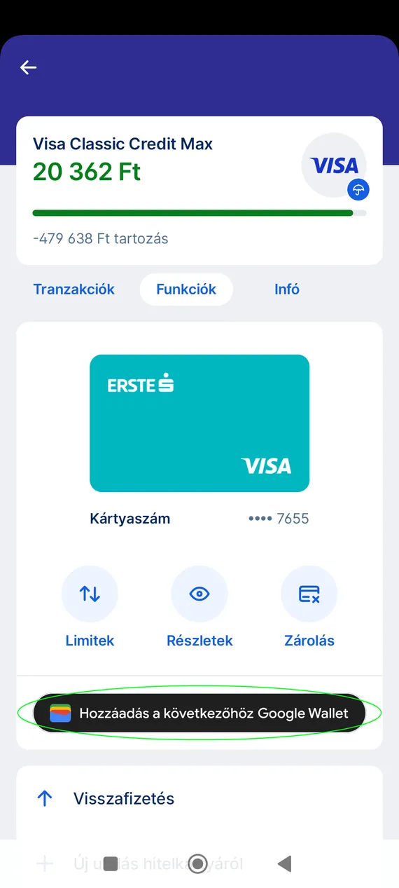 George alkalmazásban, az adott bankkártyád részleteiben, a Funkciók oldalon láthatod a Google Pay státuszát. Ha Nem aktív állapotot látsz, innen indíthatod az aktiválási folyamatot.