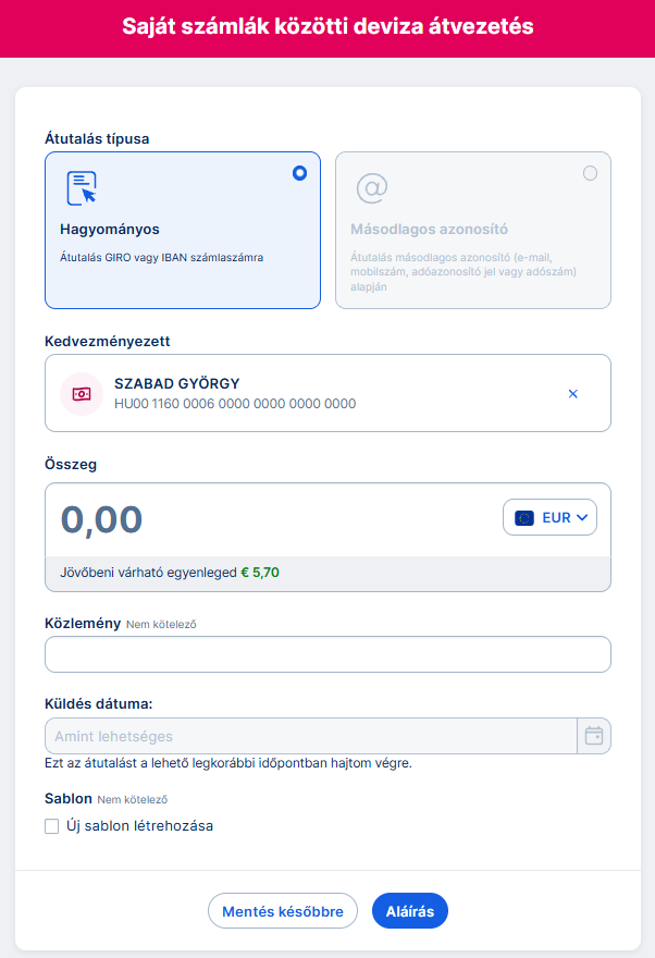 Ha rendelkezel különböző devizájú számlákkal, akkor közöttük tudsz átvezetést végezni.