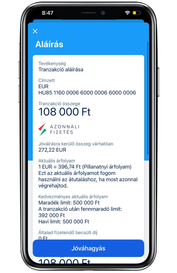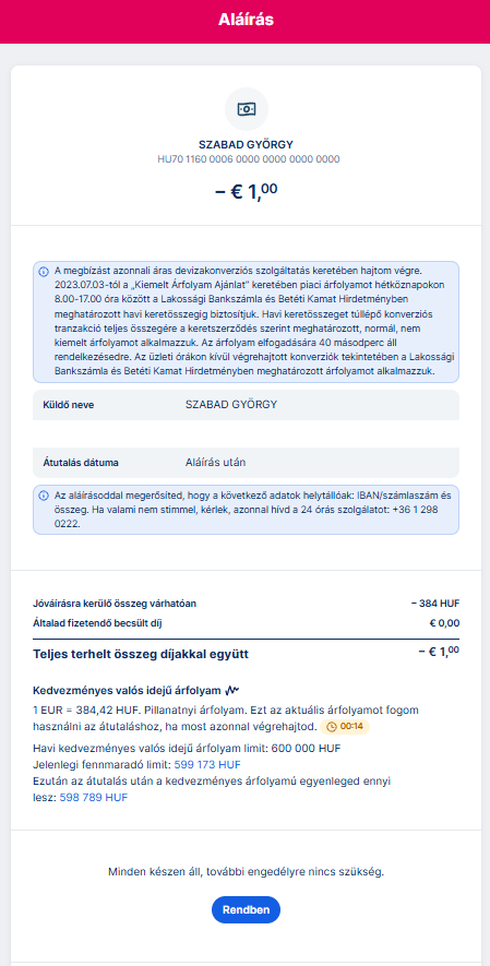 Az utalás teljesítése előtt még egyszer ellenőrizd a fontosabb adatokat, majd írd alá a tranzakciót!