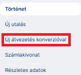 A Termékeid menüponton belül válaszd ki azt a számlát, amiről szeretnéd indítani az átvezetést! Válaszd az oldalmenüben található „Új átvezetés konverzióval” menüpontot!