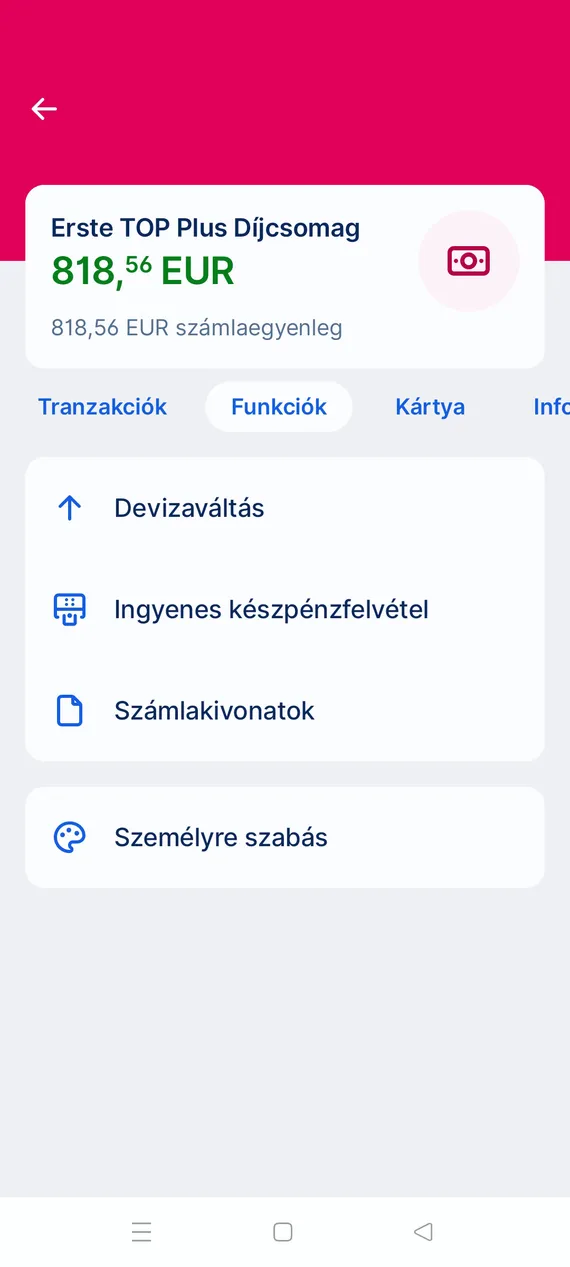 A funkciót eléred a számlán belül a „Funkciók” fülön is: