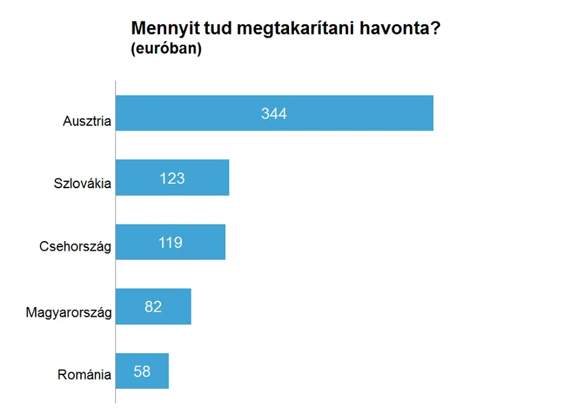 A vizsgált országokban a legtöbben vészhelyzetre spórolnak, ám míg például Szlovákiában ez az arány 94 százalék, Magyarországon mindössze 48 százalék. Itthon ugyanilyen népszerű az időskori kiadásokra gyűjteni (48 százalék), és alig valamivel lemaradva a harmadik helyen áll az általános pénzügyi tartalék (47 százalék). A válaszadók 35 százaléka mondta azt, hogy egy nagyobb jövőbeli kiadásra, lakás vagy autó vásárlására gyűjt, míg drágább elektronikai eszközre 16, nyaralásra 14, oktatásra, képzésre pedig mindössze 7 százalék rak félre. A magyarok 11 százaléka mondta, hogy nagyon elégedett, míg további 27 százalék inkább elégedett azzal az összeggel, amit meg tud takarítani, ezzel szemben 21 százalék egyáltalán nem, további 16 százalék pedig inkább nem elégedett azzal, amit félre tud tenni.