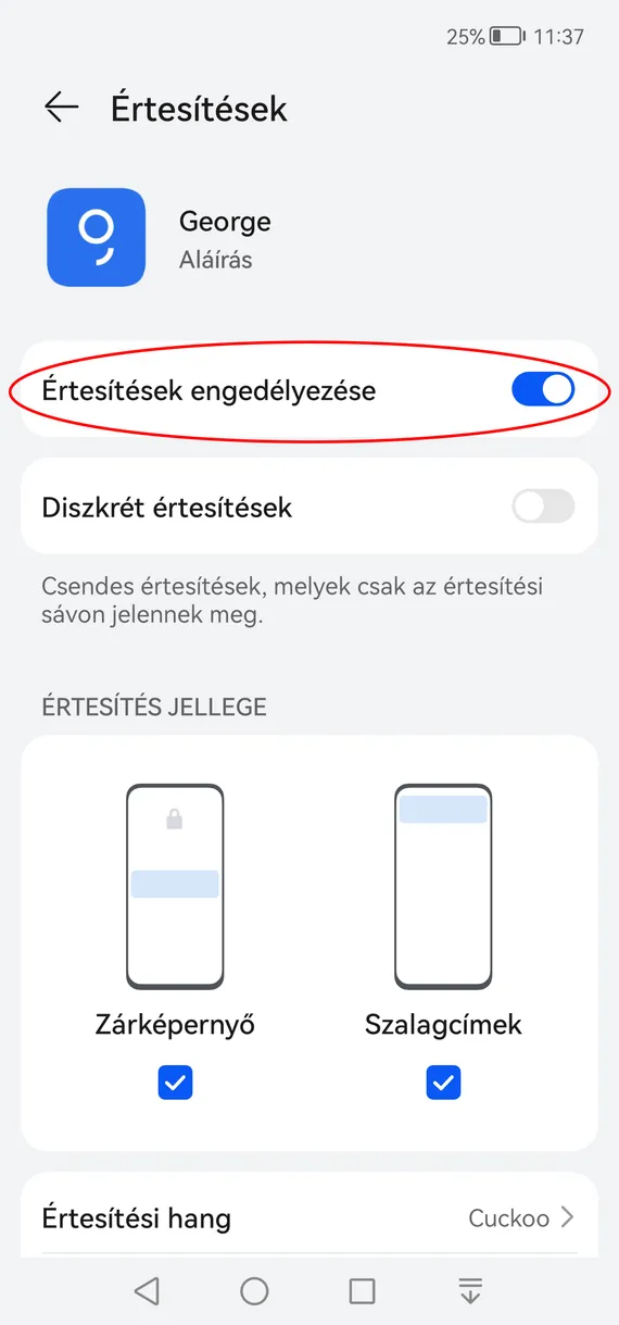 Ha a fentiek elvégzése után még mindig nem kapod meg a George App értesítést (push üzenetet), indítsd újra a telefonod, hogy frissüljenek a beállítások!
